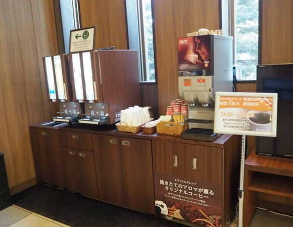 大廳有迎賓的飲料,以及給女性旅客的住宿包, 一些細微的設施跟服務