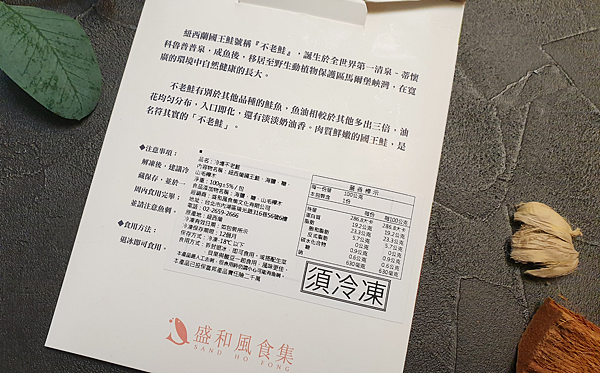 包裝背面有紐西蘭冷燻不老鮭的介紹以及營養標示
