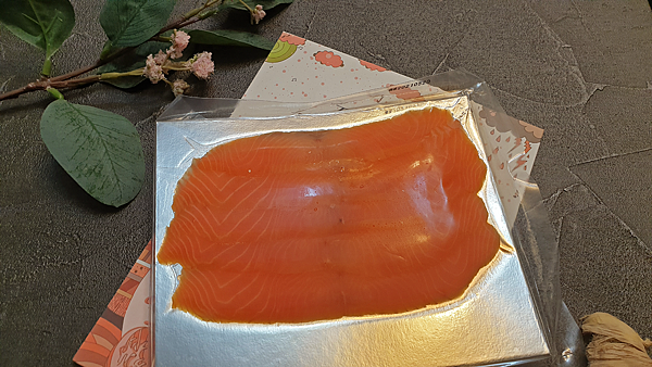 打開之後,冷燻鮭魚看起來滿大片,油脂也很漂亮