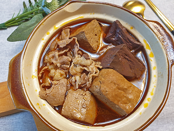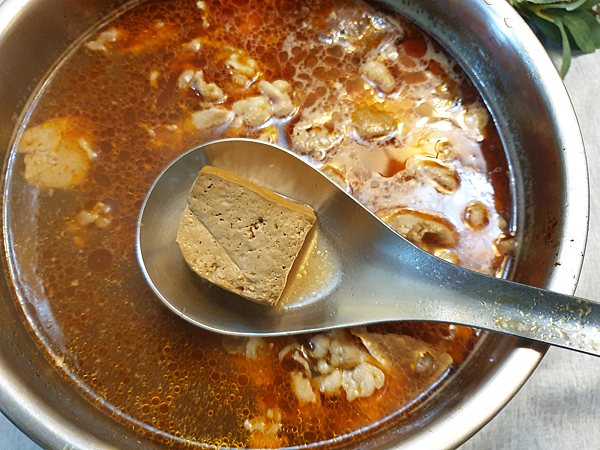 板豆腐(臭豆腐)6塊、鴨血6塊共400克,濃縮高湯800克