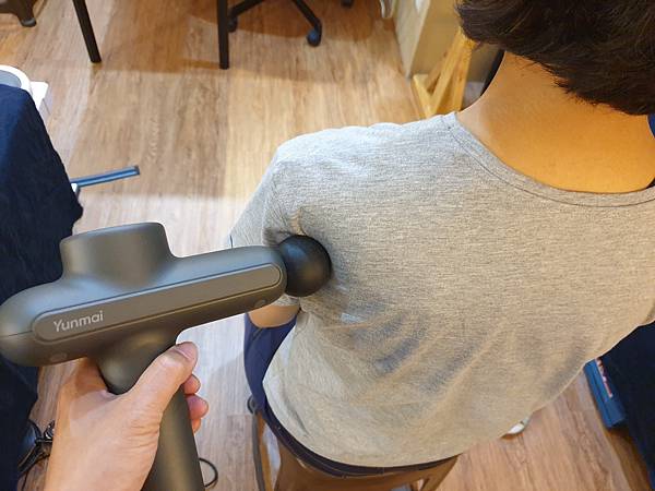筋膜槍按摩的感覺是振動的方式,不會疼痛,滿舒服的喔 ![]()