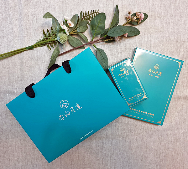 「李向月連」燕窩保養品的設計用玫瑰金搭配藍綠色呈現出一種高級感