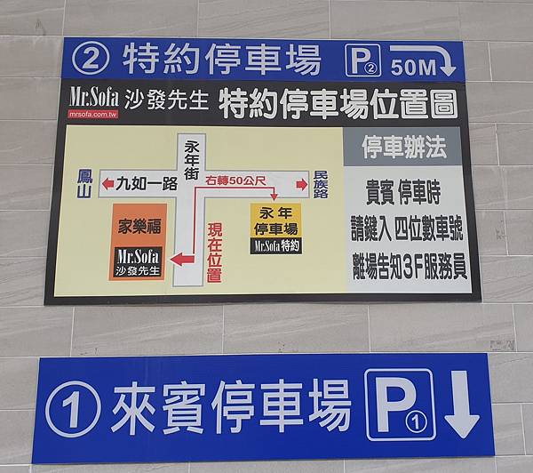 "沙發先生家居九如旗艦館"的區域附近滿熱鬧,原本擔心不太好停車,但體驗館前有規劃停車區域,也有特約停車場,開車前往不用擔心沒有車位。
