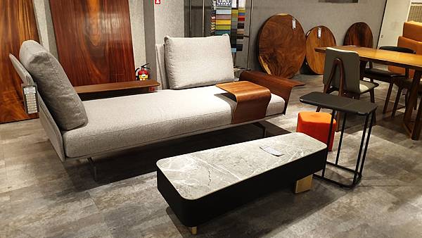 二樓是精品訂製館,展示的沙發都是比較大尺寸的為主,沙發的功能跟造型設計也是針對比較坪數較大的房子考量。