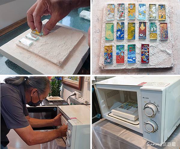 玻璃上完顏色後要放進窯裡面燒燒燒~一陣子 , 頭一次看到用圍波爐電窯真奇妙!