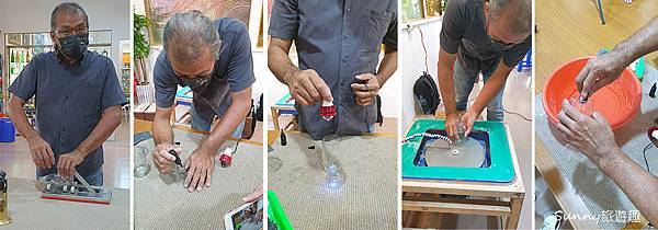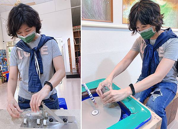 本來切割玻璃瓶聽說傳統的工序是比較麻煩的,但經過老師的改良之後,