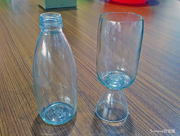 還有這個體驗也很有趣,把牛奶瓶(左邊)做成酒杯(右邊)。