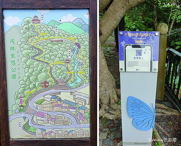 沿途有設置地圖告知路線 , 也可以掃描QRCODE有導覽APP 。