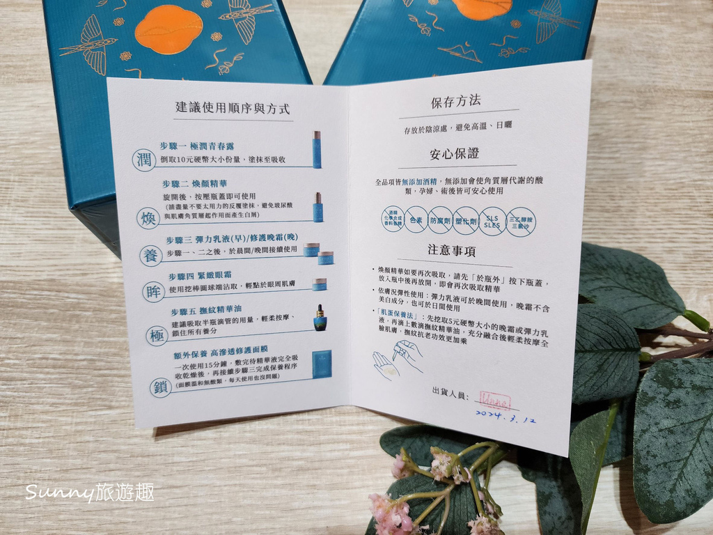 產品裡有附一張建議使用順序與方式,以及詳細告知保存方式,很貼心! 像精華液跟精華油我比較少使用,有時候還真的會不太清楚應該在哪個順序使用。