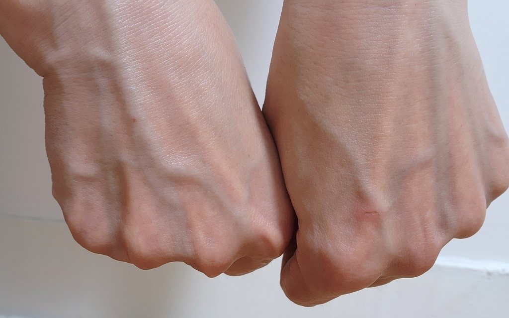 我特地塗抹在一隻手背,另一隻手不塗抹來比對看看。