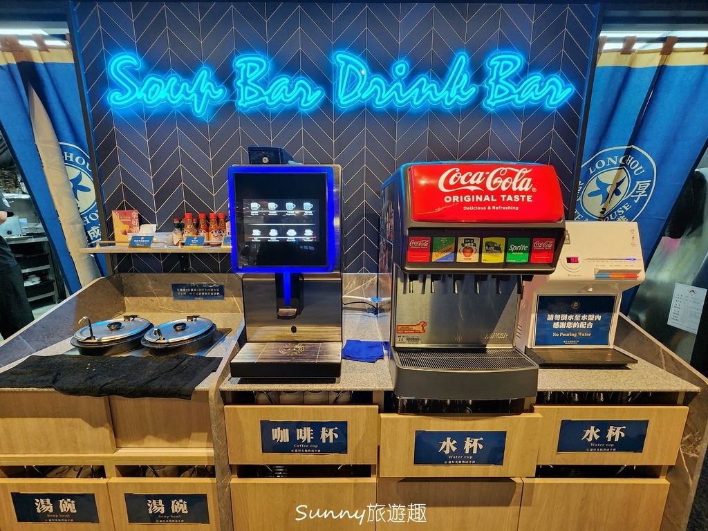 自助吧的飲料與湯品都可以自行取用,飲料部分有咖啡、汽水、白開水。