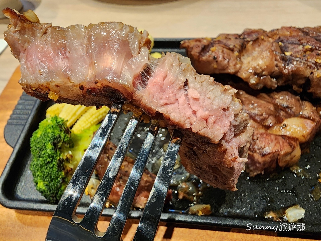 牛排表面煎烤出的網狀紋理,高溫直火炙燒鎖住肉汁,視覺上也讓人看了食指大動, 牛排我個人覺得美國牛真的是最好吃的,肉質鮮美。