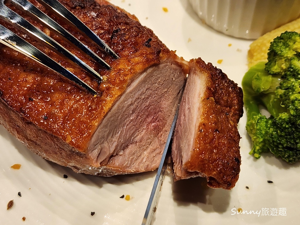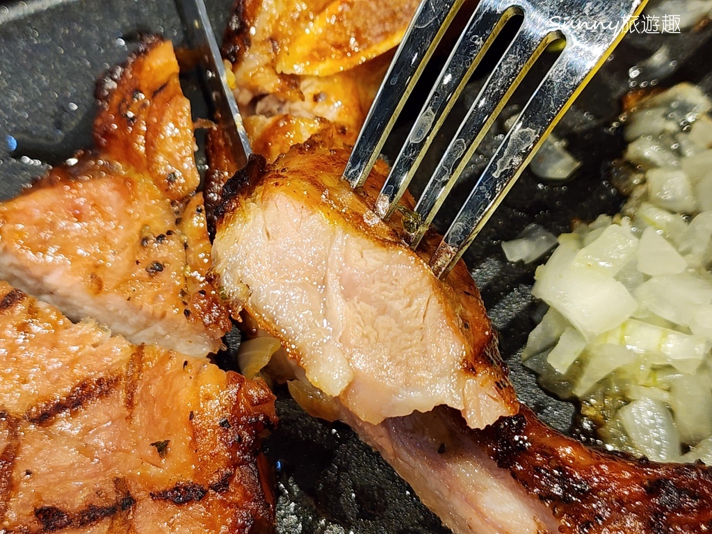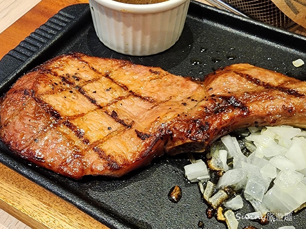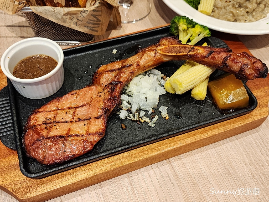 不吃牛的朋友,可以考慮戰斧豬排,這道也是店家大推的品項之一。 巨大的骨頭彷彿戰斧般,配上厚實的豬排,是戰斧豬排的特色,很適合喜歡豪邁吃肉的朋友。骨頭那邊的肉煎的特別焦香,拿起來啃超過癮的!