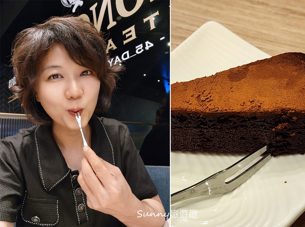 甜點有巧克力蛋糕跟起士蛋糕,都是我喜歡的,巧克力蛋糕吃起來的口感,有一點扎實組織綿密,上面撒的巧克力粉有點微苦,剛好綜合掉蛋糕本身的甜味。