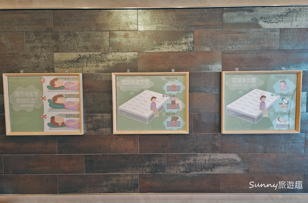 進門的玄關處擺設了海報,讓顧客了解如何正確的試躺,測試床墊的方式,讓大家可以找到適合自己的床墊。