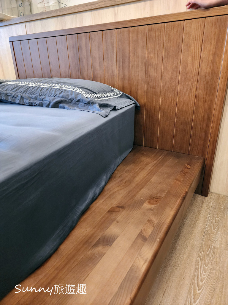 有些人可能會擔心床墊下方做抽屜,床的支撐度會不會因此不好,Sunny直接站到床架上測試! 感覺很穩固耶 👍 。