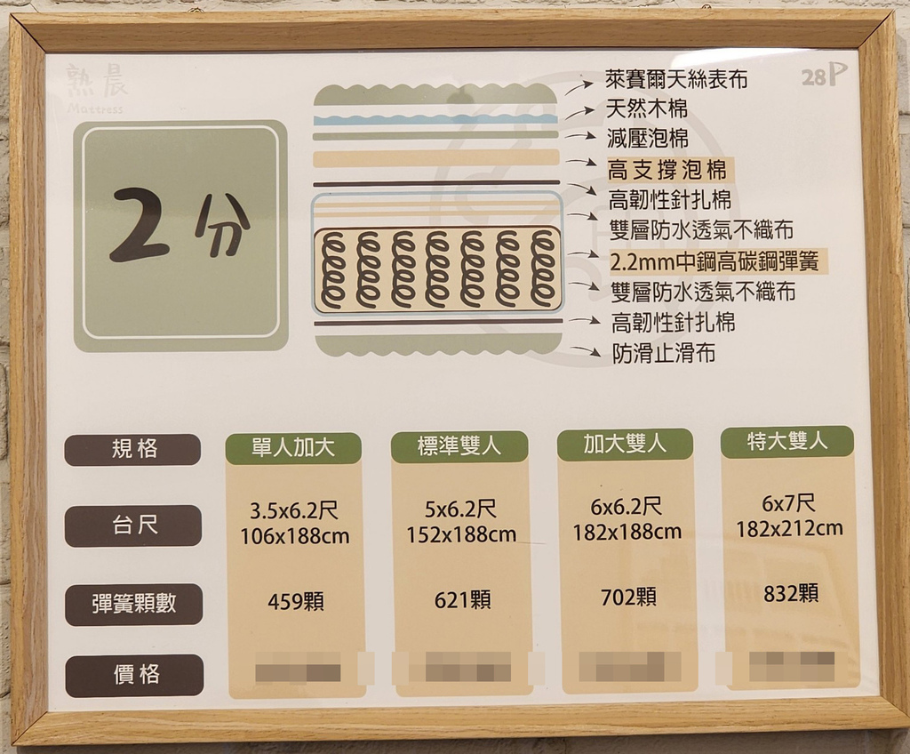好熟睡床墊則是使用較細的2.0mm中鋼高碳彈簧,舒適層除了泡棉還有添加泰國天然乳膠。