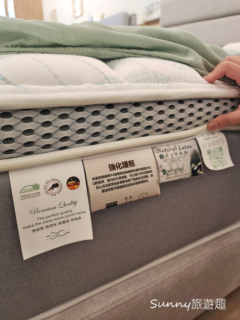 每張床墊都有出廠證明,為了怕消費者保固書遺失,他們直接將每張床墊的型號與重點材質的標籤縫在床墊上。對消費者來說更有保障。甚至是可以追朔到哪一位經手師傅做的呦。