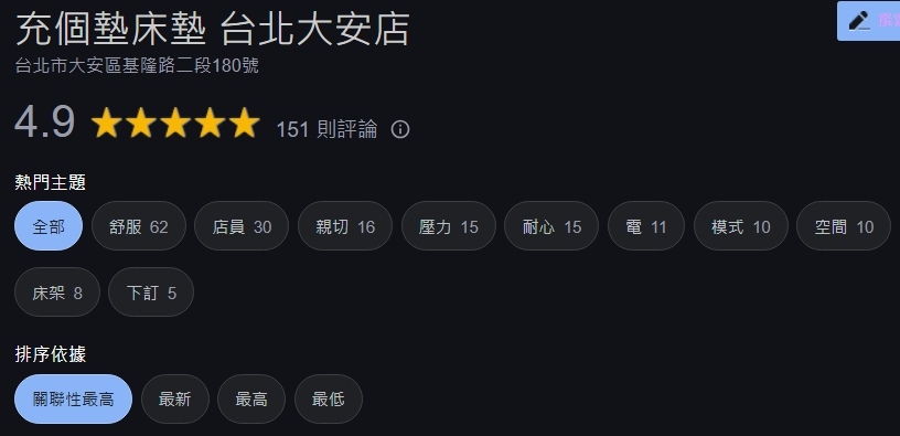 「充個墊」網路評價超高,參觀過的人普遍對床墊舒適、店員親切、試躺無壓力給了很不錯的評價。