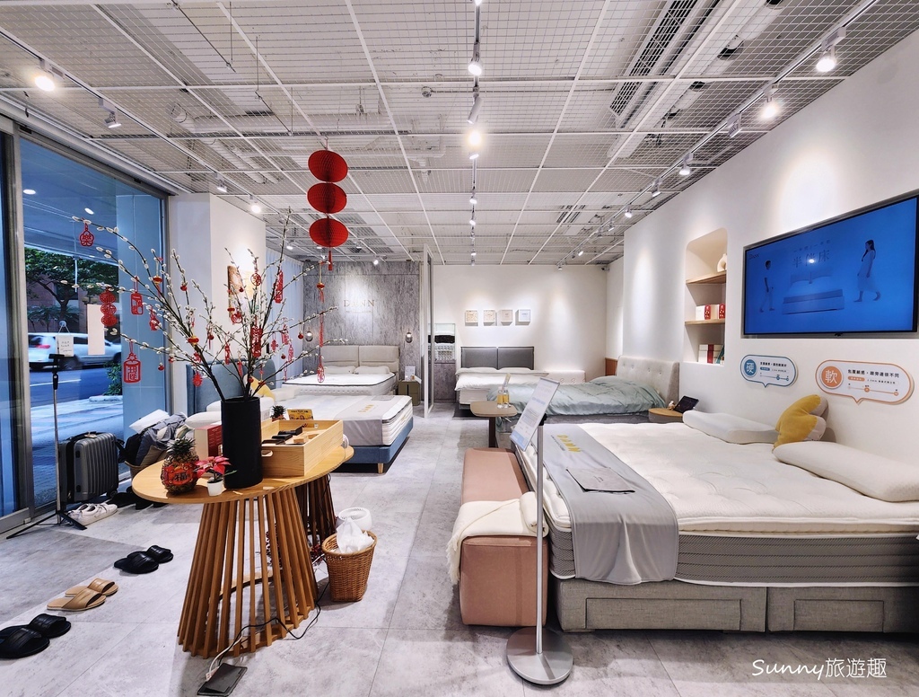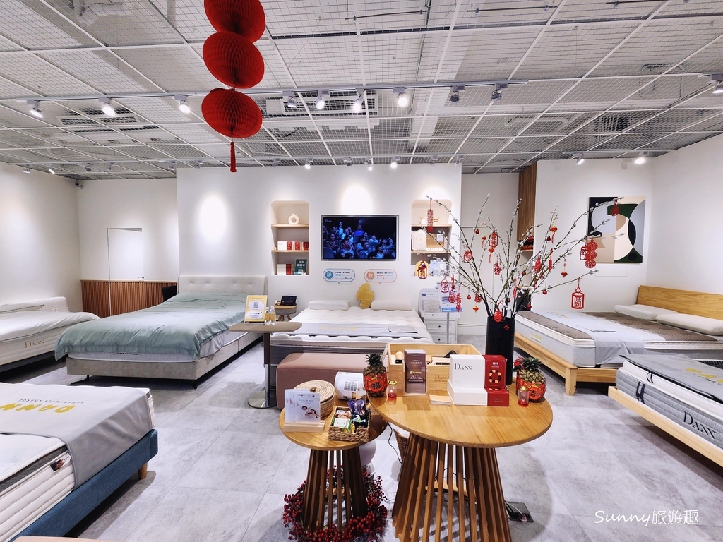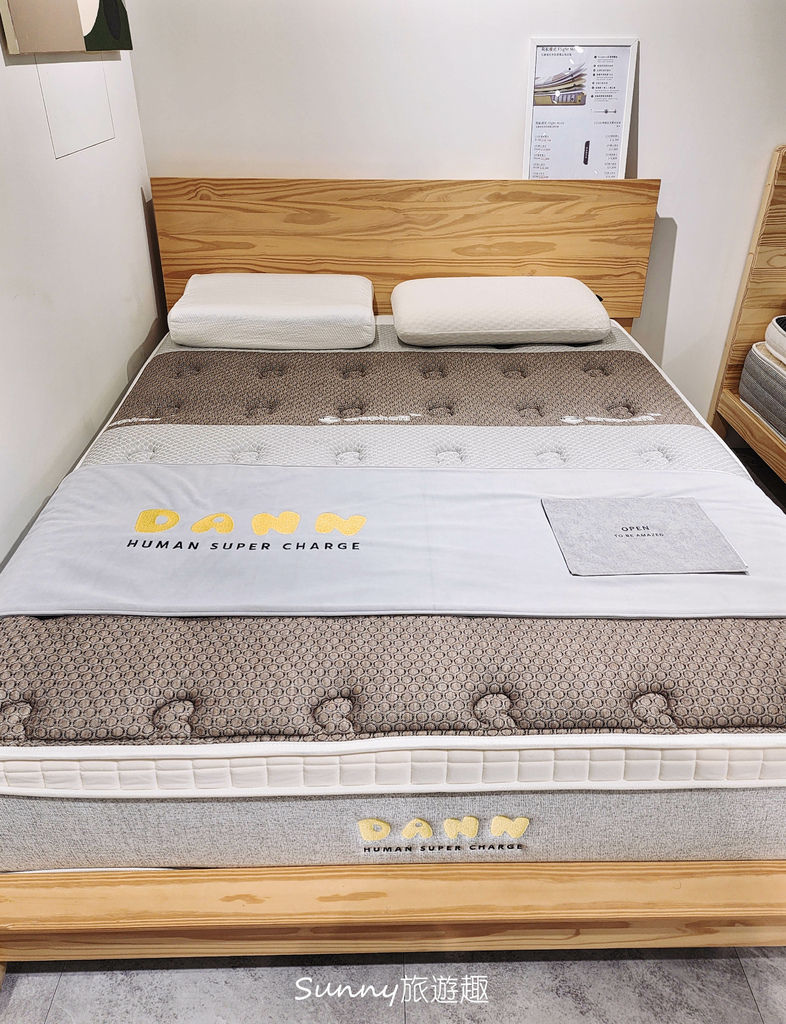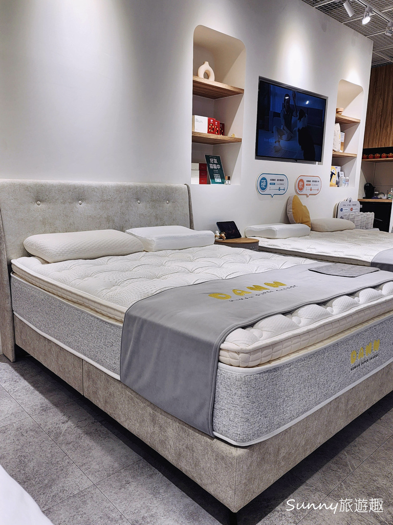 大安門市展示的商品以床墊為主,還有床架、枕頭、床包等寢具相關商品。門市乾淨明亮、舒適,服務人員親切讓人沒有壓力。