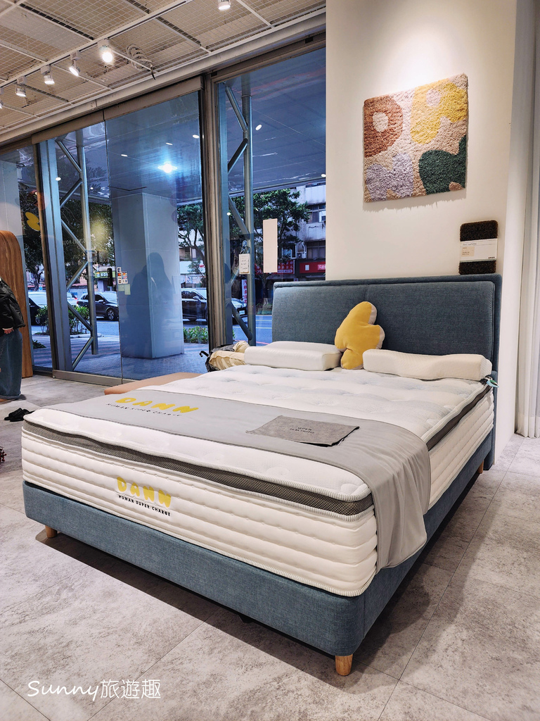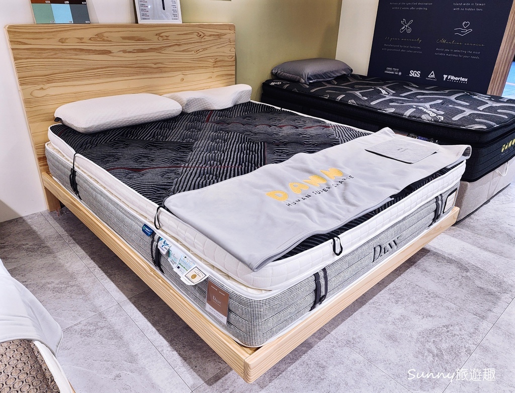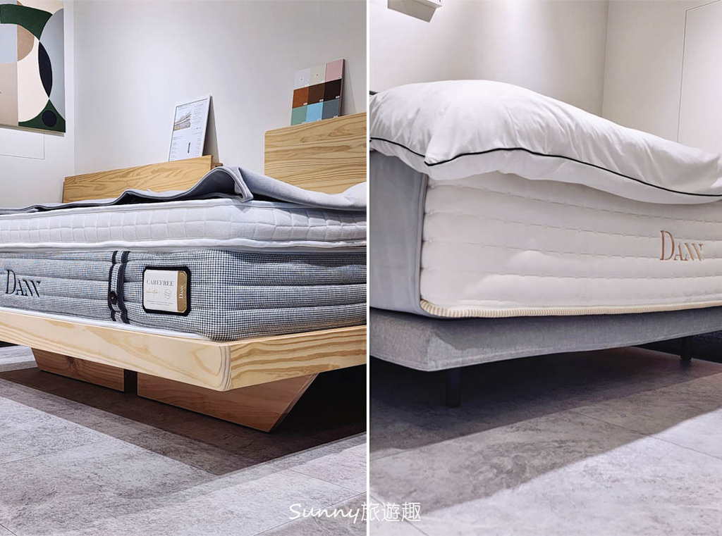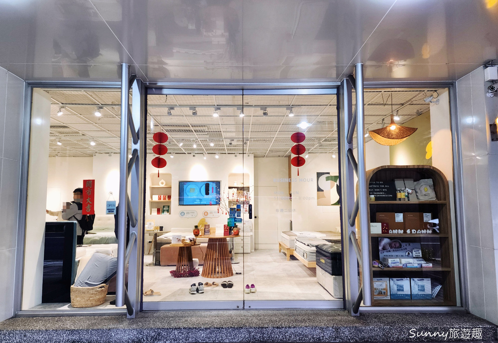 大安門市展示的商品以床墊為主,還有床架、枕頭、床包等寢具相關商品。門市乾淨明亮、舒適,服務人員親切讓人沒有壓力。