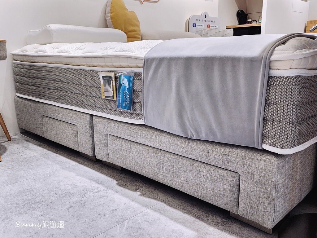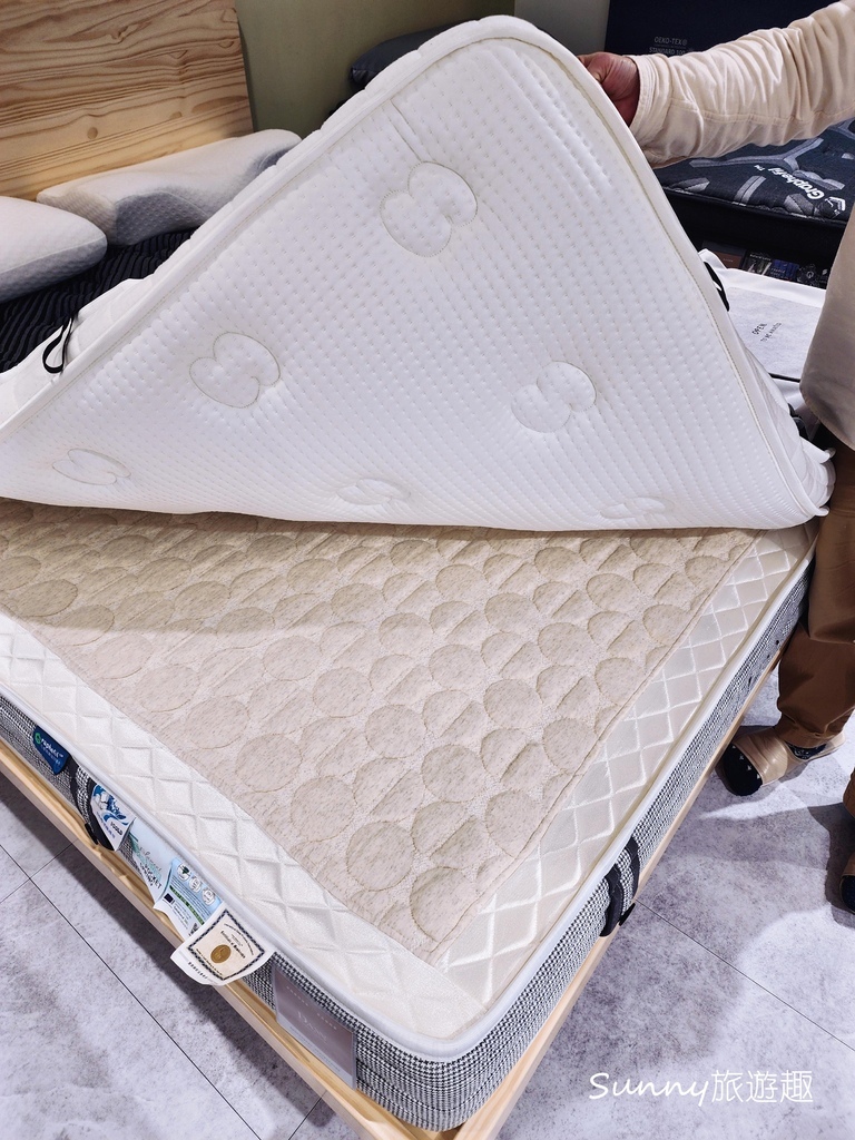 店內明星熱銷款是省電模式,還有頂級用料+手工製成的極光床墊(十分之一價格入手百萬等級名床) ,怕冷又怕熱的人Sunny推薦你試躺四季墊, 它的正反兩面採用不同機能布料 ,一面涼感布一面石墨烯布,一個四季都舒適的床墊 。
