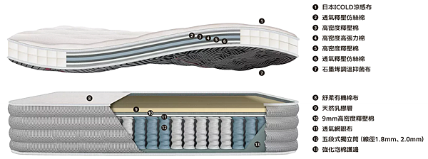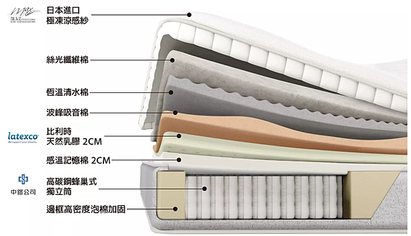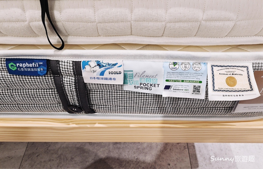 每張床墊側面都有標示該張床墊使用的重點材質標章。