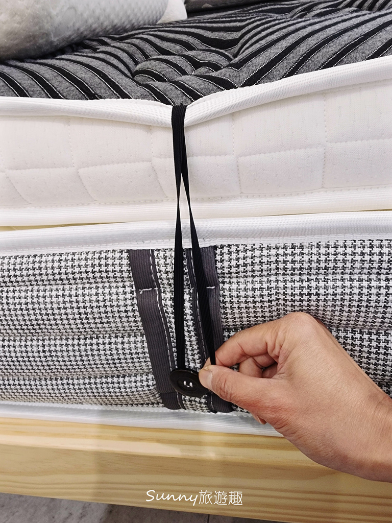 床墊側面有設計拉扣可固定,增加床墊的穩定性,讓上下墊不易滑動。