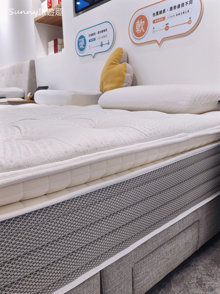 省電模式是門市展示的床墊中,我最喜歡的兩張床墊之一, 這張床軟硬適中,躺起來帶點 Q 彈感,包覆性很棒,讓人感覺特別放鬆 ,仔細一看原來裡面有乳膠跟記憶棉,都是我喜歡的材質躺感,難怪我很喜歡這張床XD。