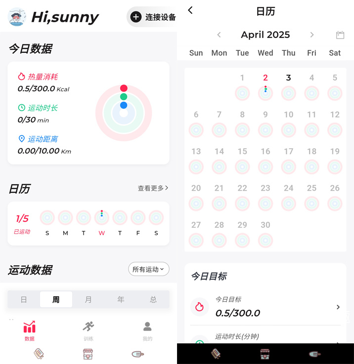也可以設定熱量消耗目標跟運動天數目標,就像有個貼身教練般。