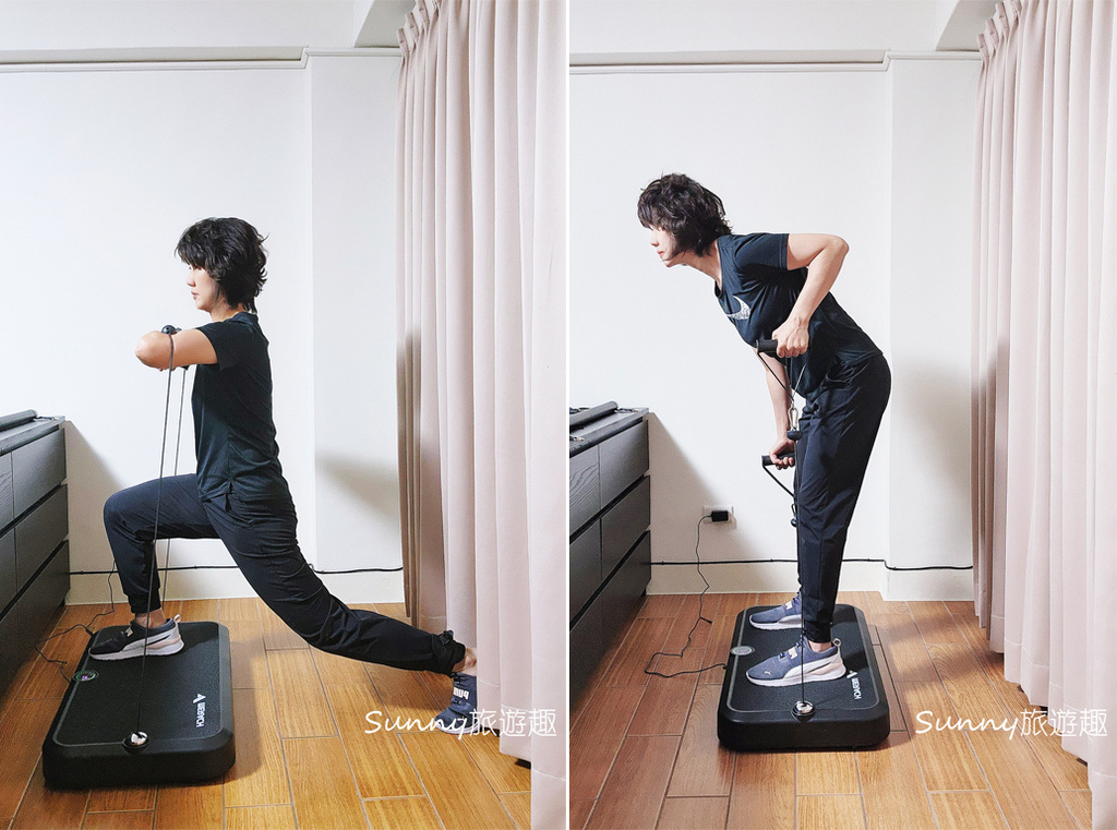 弓箭步深蹲這動作我也很常練,以前在家裡沒有器材時,通常就用自身重量訓練,現在有一站式力量站了就可以增加重量,讓效果更好。