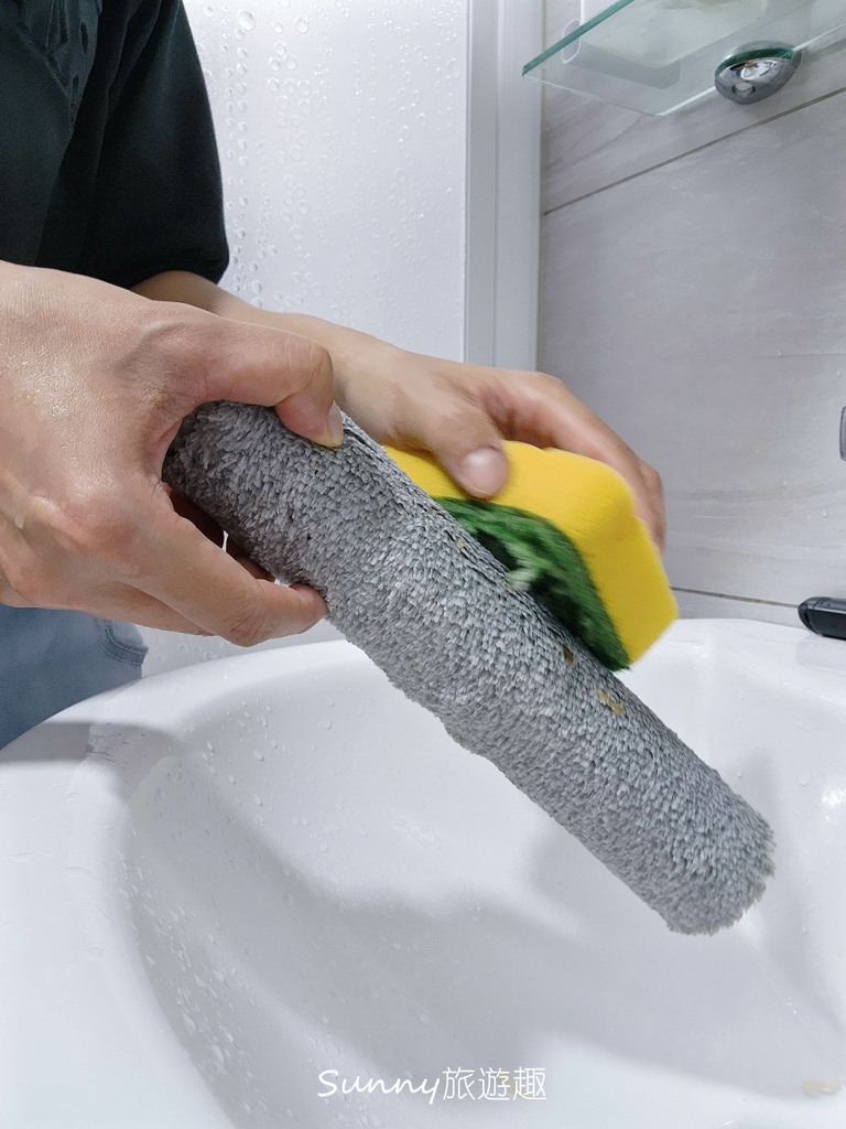 Sunny建議可以直接加購一隻滾刷,可以依照清理的空間不同,使用不同滾刷,例如清潔廚房與房間的分開,畢竟廚房比較油膩,雖然會清潔滾刷,但還是分開會更乾淨,或是做一般替換使用,洗完滾刷之後須等待一段時間才會乾,這時就可以用另外一個滾刷清潔。