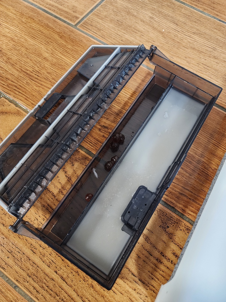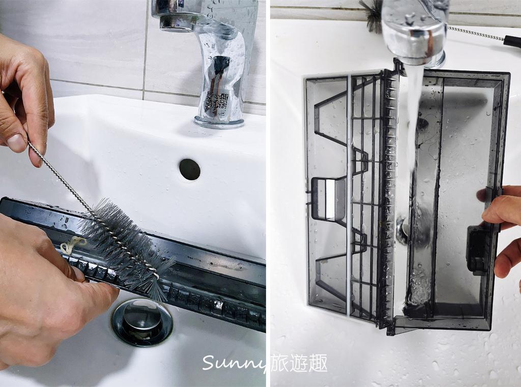 然後再用刷子清理汙水箱前方的鋸齒狀導流板,以及水箱內部。