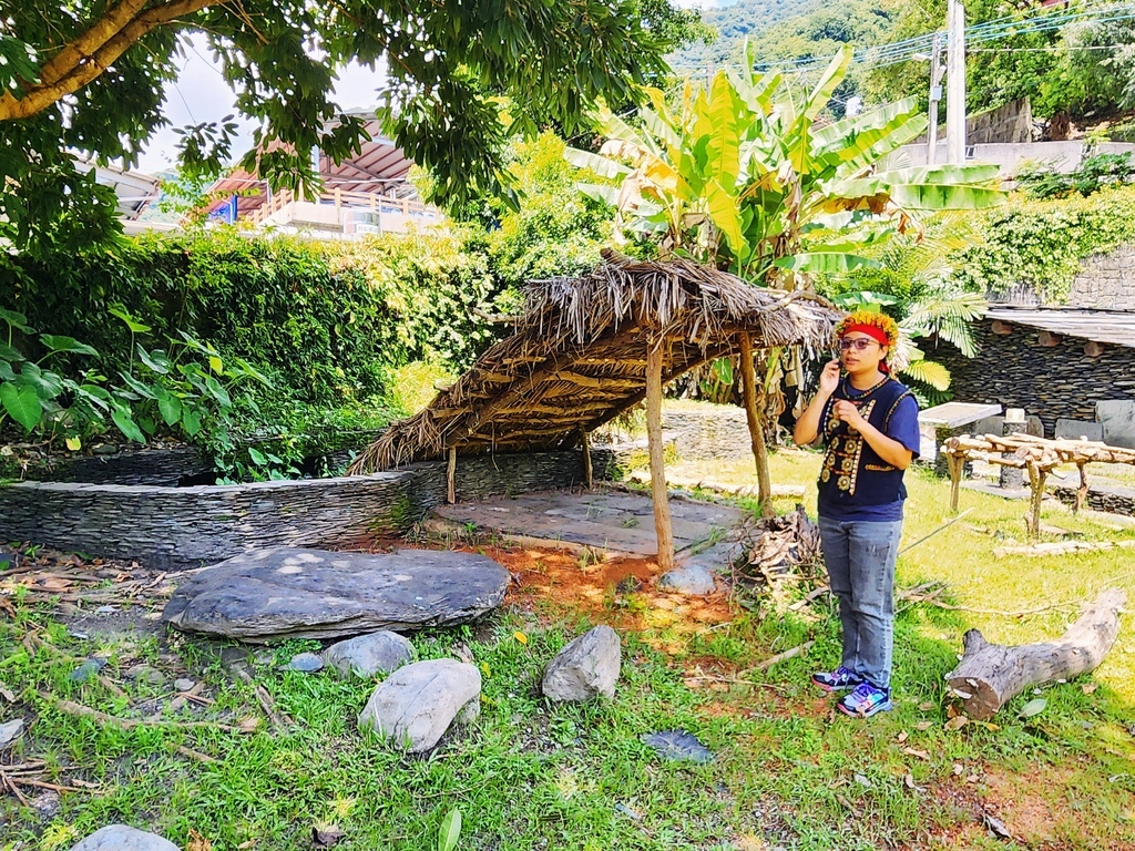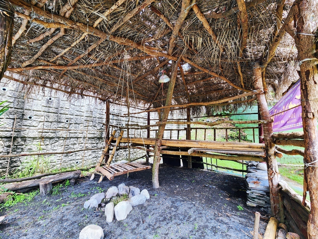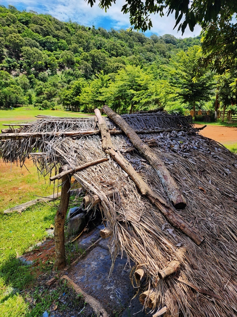 這個看起來像「茅草棚」的建築,原來是部落的獵寮,這可不是觀光裝飾喔,而是真正有用途、有故事的文化建築, 獵寮多由竹子、木材與茅草搭建 ,過去魯凱族男子進山狩獵、巡守領域時,會在山林中搭建這種簡易的草屋,當作休息、過夜、備糧的臨時據點,你可以把它想像成「山裡的行動基地+宿營處」。
