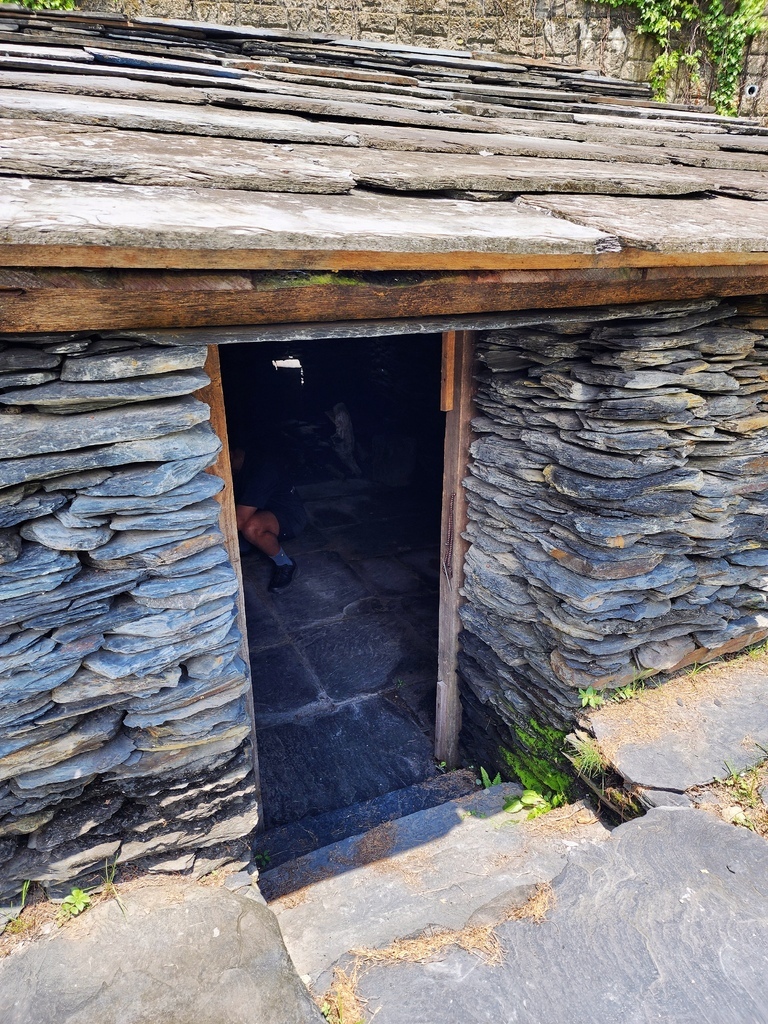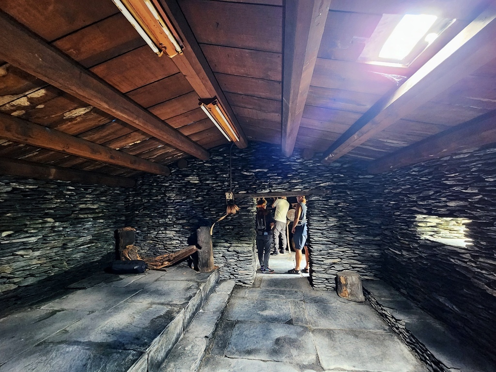 導覽員說,早期生活在山裡,防範敵人或外人很重要,所以石板屋的門口刻意蓋得低,讓進門的人必須低頭彎腰,為什麼?因為一旦對方有敵意,在低頭那一瞬間,屋內的人就能看清動靜,必要時也能立刻反擊保護家人,想一想,這設計真的是超有 sense耶,不用裝監視器、不用裝感應器,一個矮門就自帶安全機制,既實用又有文化含義,另一層涵義則是提醒我們進屋要尊重屋主之意 ,真正「設計融入生活」的極致啊~
