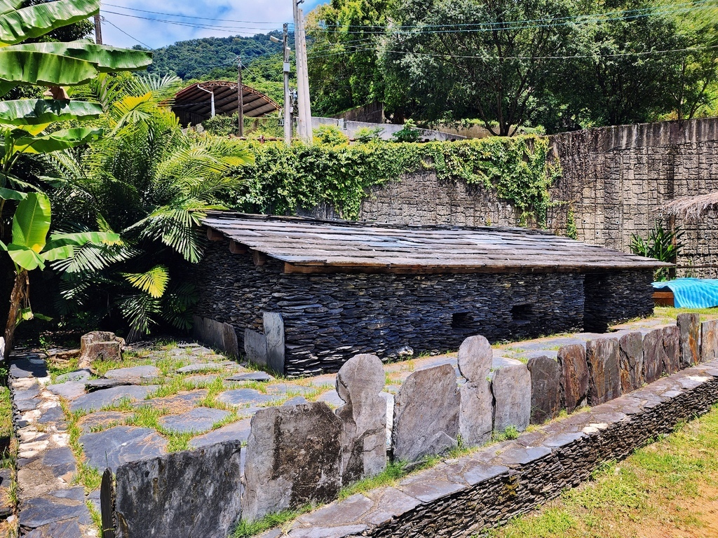 跟著阿歪的步伐,我們接著來到石板屋,我除了對歷史文化有興趣之外,其實我以前念的是設計相關科系,對建築和空間特別有感,老實說,參觀石板屋是我這趟來萬山部落最期待的項目之一。