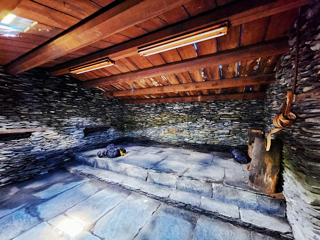 我又好奇了! 地震來不會倒嗎? 導覽員說不用擔心地震,乾疊的方式讓它越震越穩! 每一層石板都不會對齊上一層,這層錯層堆疊的設計,可以把壓力分散開來,不容易倒掉。加上石板重量大、表面摩擦力高,地震時即使有移動,也不會瞬間崩塌,而是像「被動緩衝器」一樣自行微調空隙 。了解石版屋的蓋法之後,讓我對古人的智慧真的非常尊敬,太厲害了!