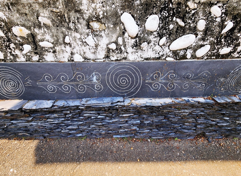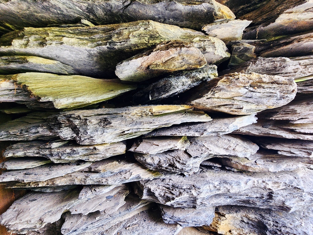 我又好奇的詢問,石板看起來一片片堆疊起來,有用水泥或其他東西固定嗎?結果一問導覽,原來他們的石板屋完全是「乾堆式堆疊」,沒用水泥、沒用糯米漿、也不打釘子,只有在石板與石板之間放上一些砂石, 靠石頭自身重量來穩定結構。