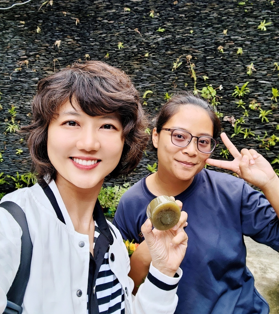 我們選擇體驗手工香皂,使用當地的植物,並蓋上萬山部落的標誌圖騰,做成外面買不到,獨一無二的手工皂回家當紀念(開心)