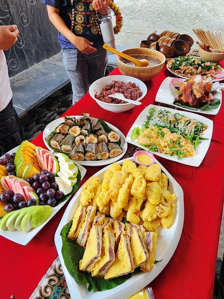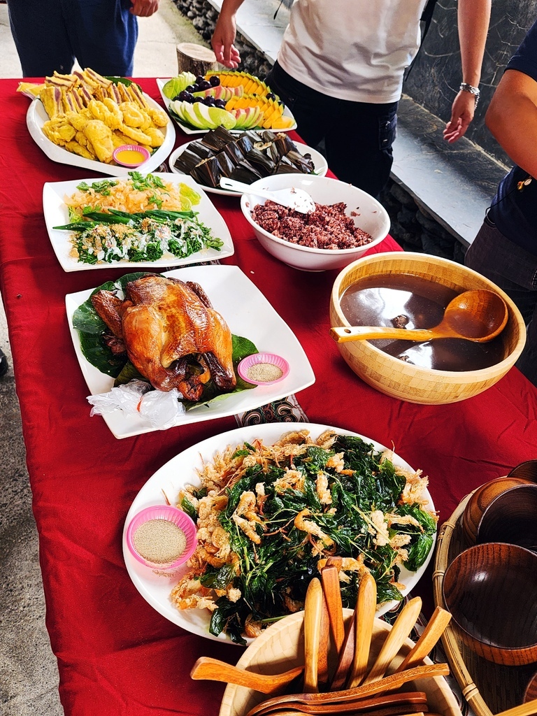 來到部落遊玩,當然也要吃吃原住民美食,部落準備了很豐盛滿滿一桌大餐招待我們, 讓我眼睛都亮了! 原住民的食物最大的特色就是 簡單、原味、但有靈魂! 像是烤山豬肉、竹筒飯、野菜湯等,沒有太多調味,卻可以吃到食材本身的香氣,對我們這些平常習慣外食、重口味調味的都市人來說,這種反璞歸真的料理,反而更能吃出天然的滋味。