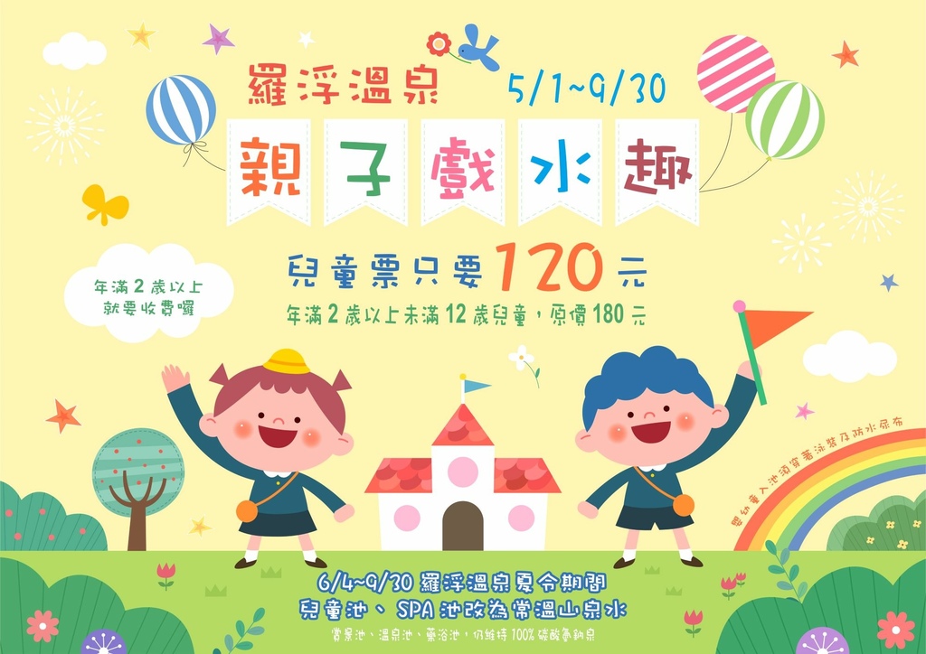A.Sunny覺得滿適合帶小孩去,羅浮溫泉有一區是兒童池,還有提供一些玩具,兒童並享有優惠票價180元,夏日帶小孩來玩水,或是冬天全家一起泡湯都是很不錯的選擇。