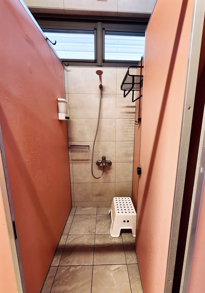 淋浴間空間滿寬敞,提供洗髮精跟沐浴乳,環境也滿乾淨,還有小椅子可以使用,對長輩來說很實用。水量很大出水量也穩定,熱水溫度也很夠,給讚XD