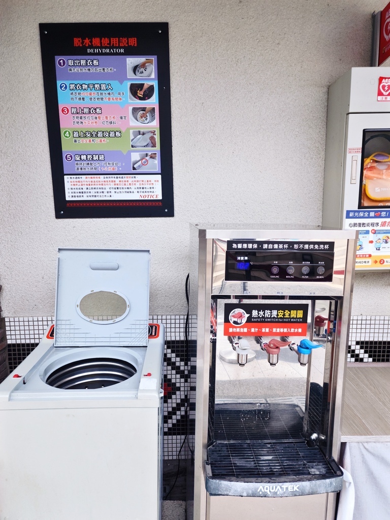 還有提供飲水機可以飲用,真的很棒耶!畢竟泡湯流失水分容易口渴,還有還有! 許多遊客稱讚的設施之一,就是有提供脫水機,清洗完泳衣之後,可以使用脫水機讓泳衣保持乾燥一點,方便帶回家。