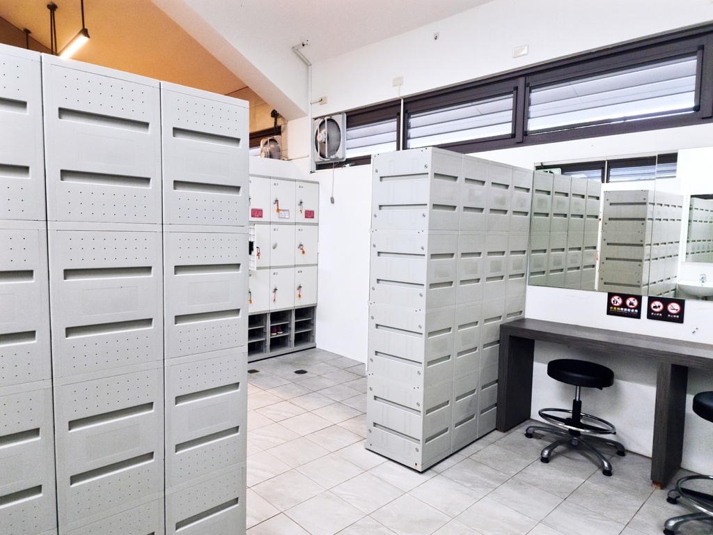 自己的鞋子可以放在置物櫃下方,置物櫃的數量很多,應該不用擔心不夠用XD。