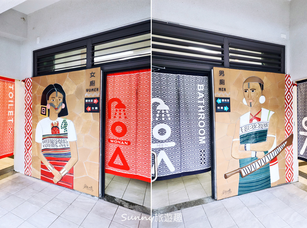 廁所跟淋浴間是分開區域使用的,男女廁的原住民圖騰跟畫滿可愛的,圖示也很好分辨男女廁。