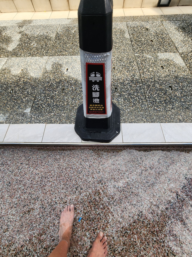 要進到溫泉區必須赤腳,拖鞋須放在鞋櫃,園區設計了一個洗腳池,讓大家進去之前可以先把腳清洗乾淨,這規劃很不錯,讓整個園區的乾淨度更提升。