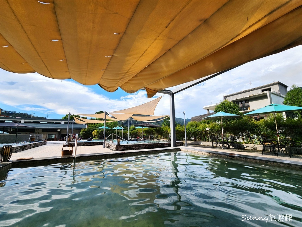 這裡的泉質是傳說中的 北橫美人湯(碳酸氫鈉泉),不僅泡起來皮膚會滑溜溜,園區還有六種大眾池:溫泉池、SPA池、藥浴池、冷水池、兒童池、賞景池,尤其景觀池風景好美。