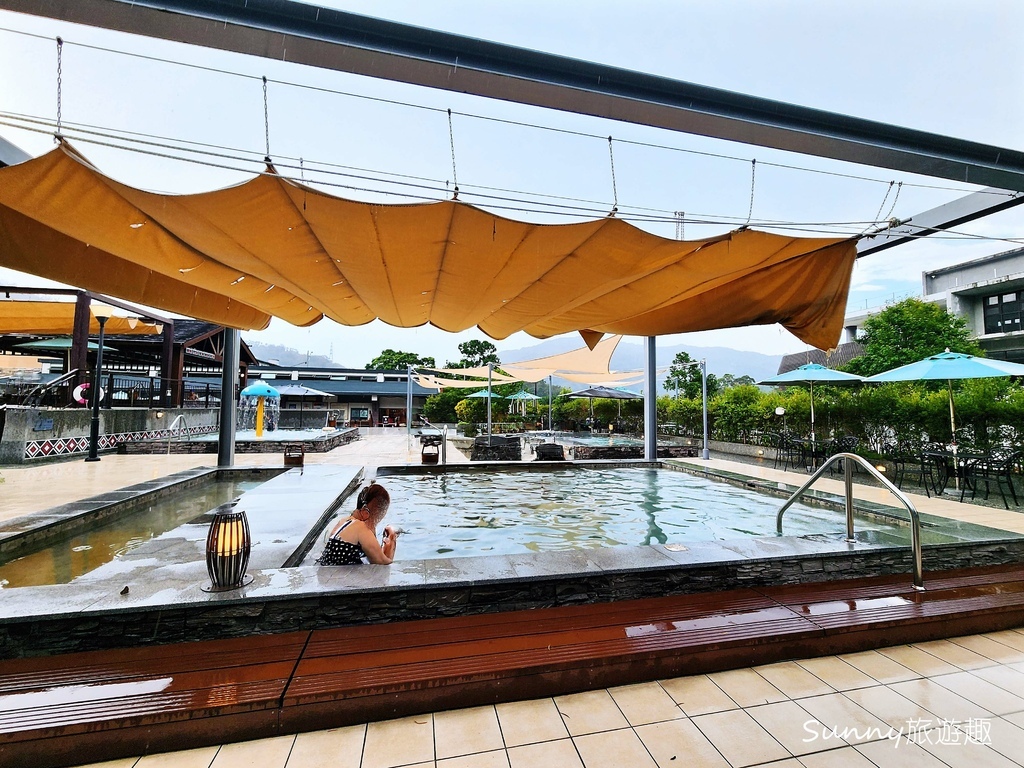 羅浮溫泉園區共有六個不同的湯池,分別有: 景觀湯池(這裡地勢是園區湯池裡最高的一個,景觀也是最漂亮的,Sunny大推!)、兒童池、SPA池、藥浴池、溫泉池、冷水池。