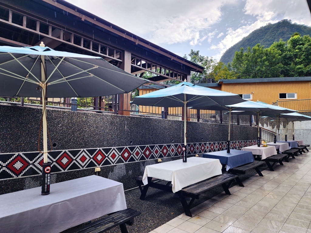 湯池周邊都設有桌椅並且還有遮陽傘,泡一泡可以坐著休息一下欣賞風景。